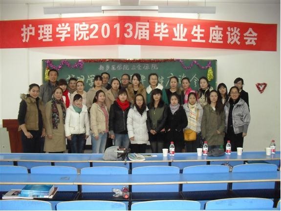 11月17日上午,护理学院在问学楼103教室召开了2013届毕业生座谈会。护理学院党总支书记许红芝、副书记马素娟、就业指导中心卢慧莹、护理学院辅导员张颖、王运春、谷妍蓉及100余名2013届毕业生参加了座谈。