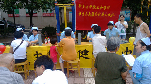 7月2日上午7:00,新乡医学院三全学院护理学院“起航天使队”15名队员在万建苗老师、蒋燕老师和李靖老师的带领下,于建东社区开展了以关怀社区,温暖老人为内容的大学生暑期社会实践活动。