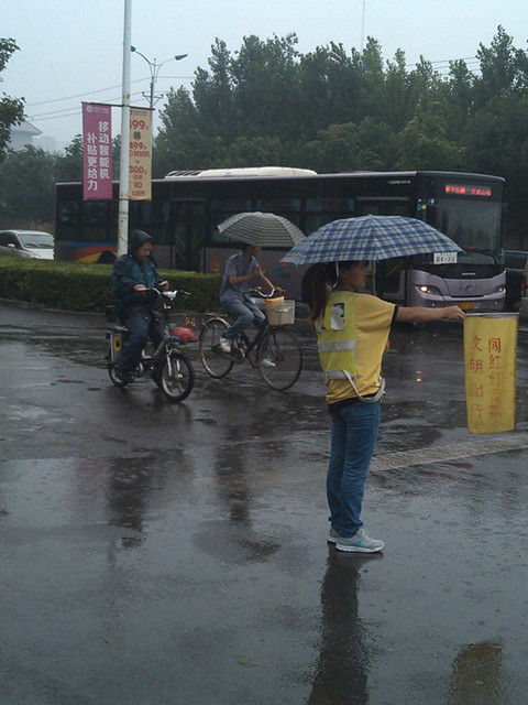 此次活动得到了洪门交警大队的大力支持!看到志愿者们在烈日和大雨下,交警们多次让我们休息一下,志愿者们每次都说:“没事,谢谢!”仍然站在自己的岗位上,交警们都被感动了,他们在我们活动时,为我们送水、送伞,并在大雨倾盆志愿者们无法回校时,用警车送志愿者们回校。这份关心,让志愿者们发自内心的感到社会的关心与关爱。
