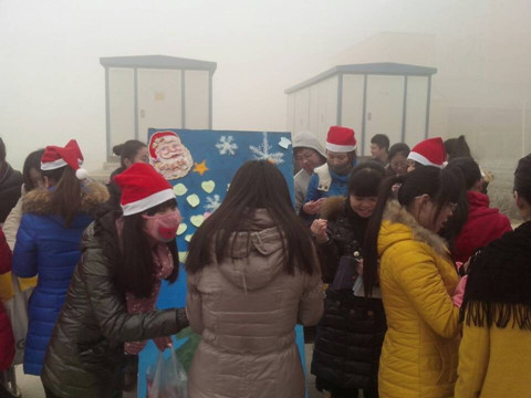 领到信封的同学们纷纷参与到游戏当中,写下自己的圣诞愿望,贴在展板的圣诞树上,不一会儿,圣诞树上满满的都是对学校,对家人的祝福。还有不少同学参与“有奖竞猜”、“你问我答”的游戏,获得了一颗又一颗亮晶晶的糖果和“圣诞老人”一个又一个大大的温暖拥抱!活动吸引了其它院系同学的参与,整个活动现场被温情包围着,寒冷似乎被吓跑,整个三全都被温暖了。