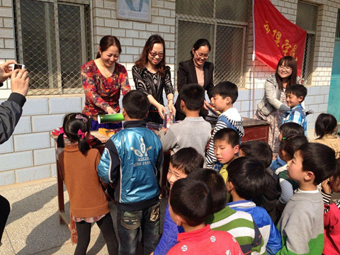 首先,姚村小学校长蒋儒忠对我院的志愿服务活动表示了热烈欢迎与肯定,希望能够通过此次合作,加强三全学院和姚村小学的合作关系,充分利用优势资源,共同促进教育事业的发展。学院团委书记王俊萍发表讲话,她说在姚村小学支教的活动中,护理学院的志愿者用自己的爱心和耐心给孩子们带来了温暖和欢乐,展现了当代大学生的良好风貌。她还强调,开展支教活动,是大学生认识社会、体验社会、服务社会的重要形式,并表示对此类活动的大力支持。伴随着热烈的掌声,护理学院党总支书记许红芝和姚村小学校长蒋儒忠共同为合作基地正式揭牌。仪式上,学院的老师们还为学生代表发放文具和体育活动用品,鼓励他们努力学习,加强体育锻炼。最后,护理学院文艺队的志愿者们为姚村小学的学生表演了舞蹈《IGOTABOY》,引得姚村小学学生阵阵欢呼,把活动推向了高潮。