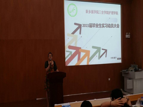 护理学院于5月29日上午,在平原新区第一教学楼D2教室召开了2015届毕业生实习动员大会。本次动员大会特邀请就业指导服务中心张帆主任及教务部实践科张新富老师为同学们答疑解惑,护理学院相关老师及七百多名实习生参加了本次大会。