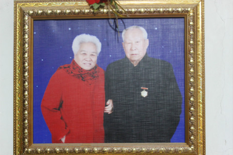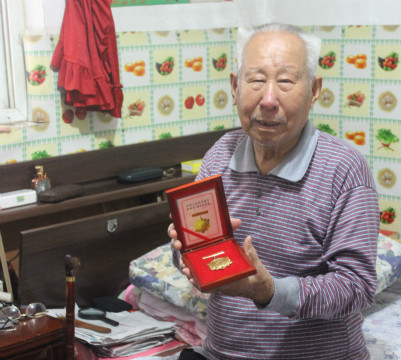 经过一个多小时的奔波,志愿者们们一起来到了朱光武老英雄的家里。老人家和老伴的身子骨都很硬朗,精神抖擞,老人为志愿者们详细讲述了其在抗战时期的经历:1946年6月1日加入中国共产党。16岁参军并在张学良的第29军任职,经历过1937年的七七事变、卢沟桥事变,因在北京作战失败,转入天津,在天津学了三年的木工,经过父亲的帮助于1942年2月1日正式加入八路军。为响应毛主席的号召“保存实力,隐蔽作战,走农村包围城市的路线”,参加了8年的游击战、5年的地道战。他详细讲述了1947年刘伯承、邓小平挺进大别山的艰苦历程。老人在作战中,经历三次大的负伤,:在作战中头部被炸伤,与日本人拼刺刀左背部负伤、山东苍南战役腿部被炸伤。老人一共获得了抗日纪念章、保卫华北纪念章、保卫中原纪念章、全国解放纪念章共四次大的纪念章,并获得三次一等功。