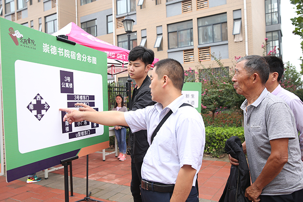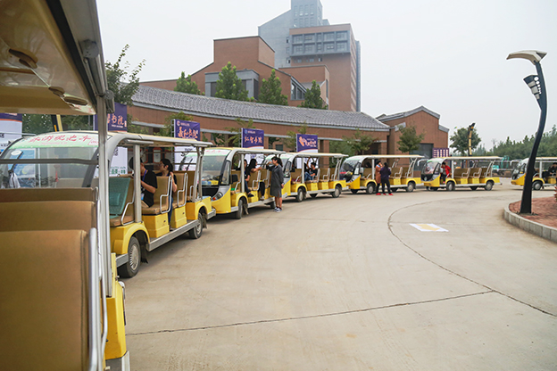 学院在郑州火车站、郑州高铁站等地方设立了迎新点,3辆大巴车不间断接送学生及家长来校报到,实现了校内外流转通道无缝对接。为适应校外311省道新修后的变化,确保行车安全,经多方协调,平原新区交警大队及祝楼乡派出所派出10名交警及治安警协助保卫科80余名保安在校门口维持交通秩序。近千名志愿者,遍布校园各个角落,维持交通秩序并开展服务工作。校门口8辆迎新服务电瓶车往来接送新生和行李。