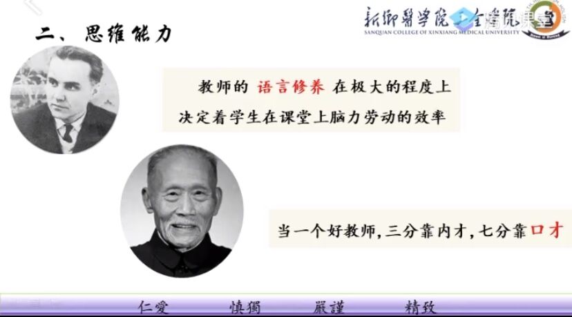 然后,王静老师运用“冰山图”来形象的解释教师要注重个人的人文素养,在备课之初,就要考虑到如何和学生进行具体有效的沟通。例如,课前5分钟要进行有效破冰,运用游戏,音视频等方法,迅速使学生注意力活跃起来,进入学习状态。在备课内容上,要丰富教学内容,深入挖掘知识内涵,才能够从课程思政、临床新进展、科学研究等角度进行有效的知识拓展,提高课程内容的深度和广度。