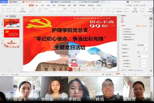 为庆祝中国共产党成立99周年,护理学院党总支精心策划了“七一”主题党日活动,活动分线上和线下两种方式开展,包含观看战“疫”示范微党课、重温入党誓词、专家讲党课、红色影评比赛、红色经典诵读比赛等五个方面的活动。