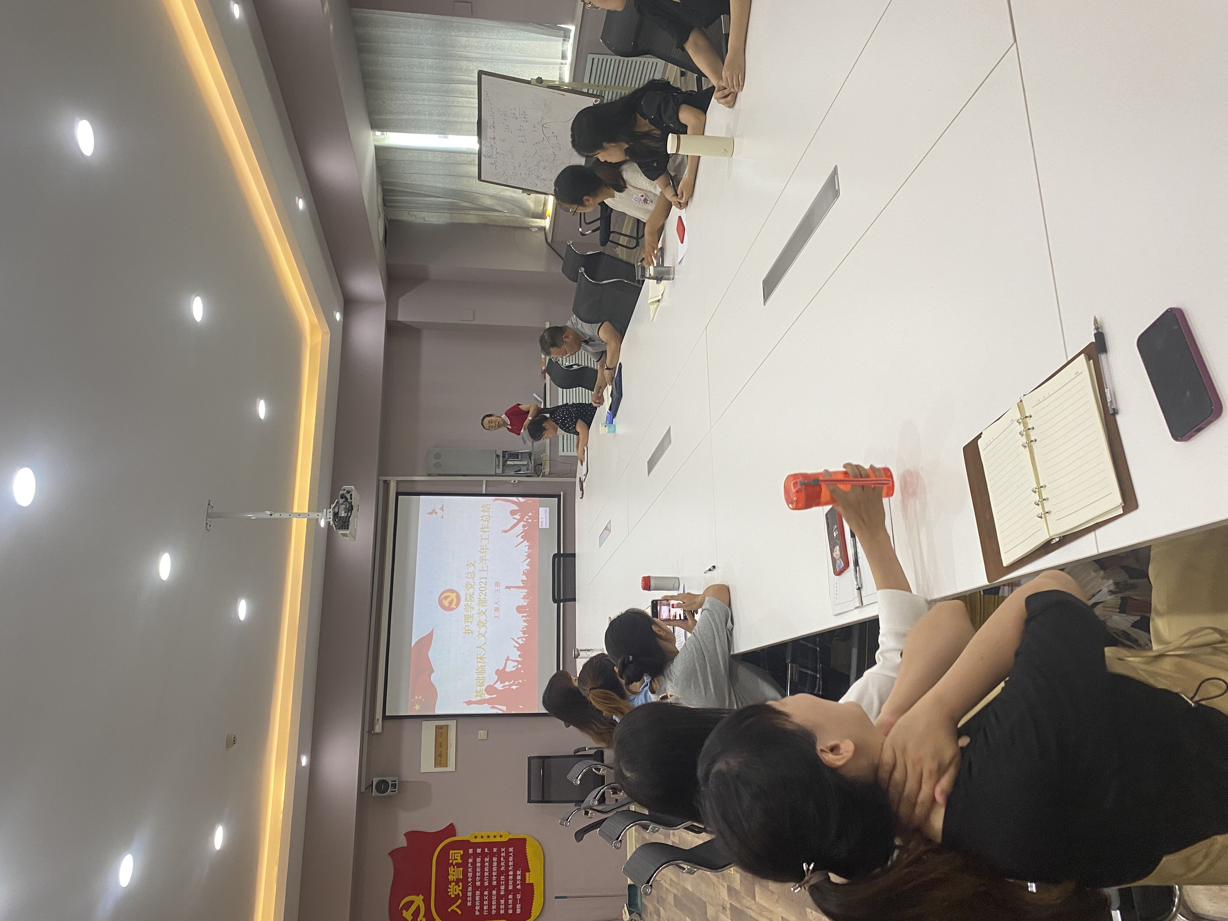 支部书记王静领学《习近平总书记在庆祝中国共产党成立100周年大会上的重要讲话》,分享了讲话中出现的几个高频词,如“人民”“民族”“发展”等。勉励各位教师努力提升教学质量,积极开展教学改革,促进学校的高质量发展,真正做到为党育人、为国育才。随后,大家开展交流研讨,杨昕岳同志谈到,作为一名党员,要知足本职工作,“平常时候看得出来、关键时刻站得出来、危难关头豁得出来”,为人师表,教书育人,用爱心守初心,以党性铸师魂。