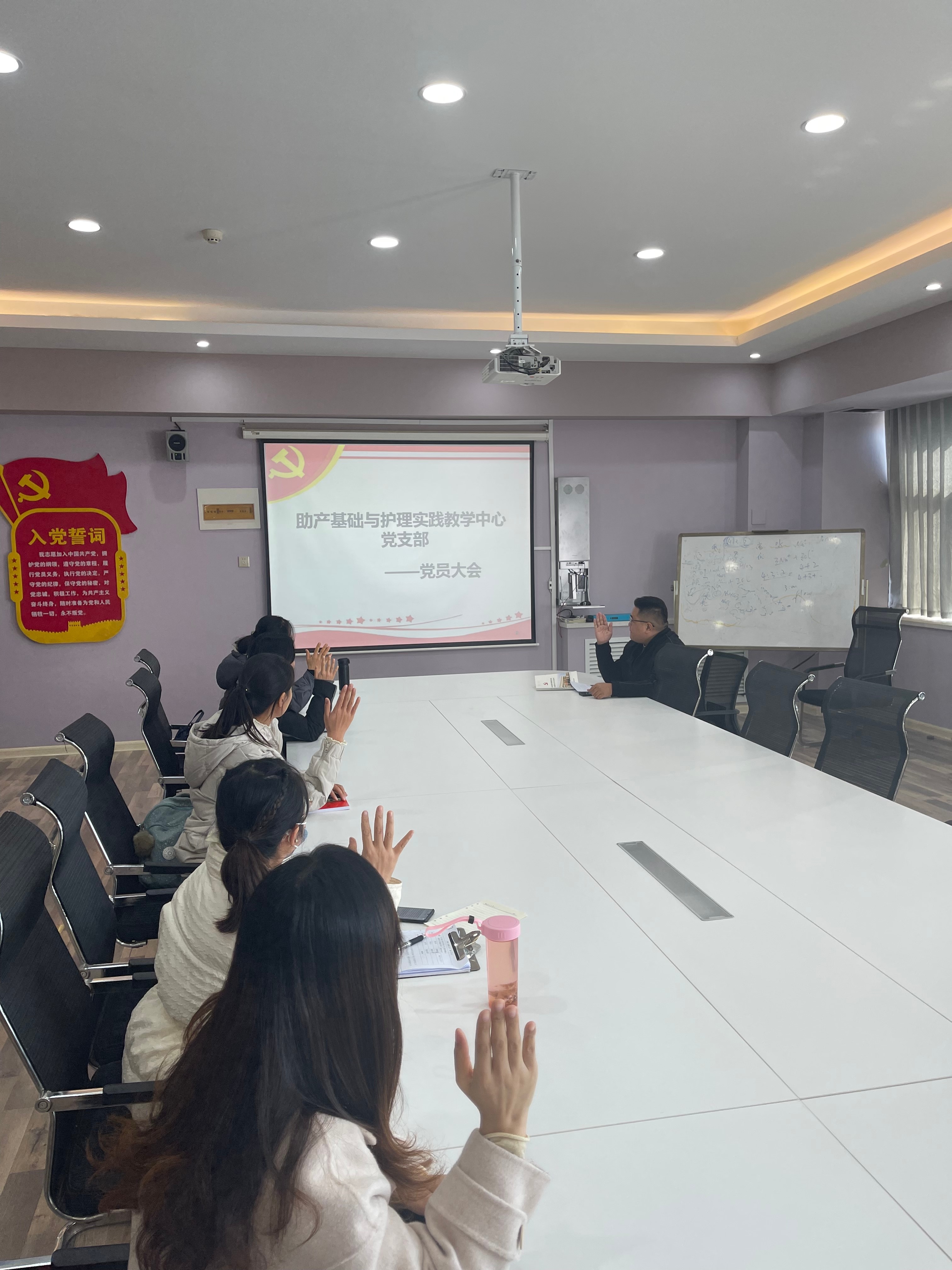 助产基础与护理实践教学中心党支部现有党员9名,正式党员9名,实到7人,有表决权的正式党员实到会人数超过应到会人数的一半,符合组织规定,大会有效。发展预备党员对象为程文丽同志,程文丽同志汇报了自己一年在思想、学习、工作、生活上的表现。敬爱的党组织:转眼间几个月时间过去了,在这段时间里,成为预备党员这一崇高追求继续激励着我,成为我工作、学习生活的动力,经过党的教育、培养,我更加深刻地领会到我们党的进步性、先进性和代表性,感觉到自己整个人的思想觉悟提高了、视野广阔了、为人民服务的决心增强了。现将我近段时间的思想、工作、学习情况向党组织汇报:在思想政治上,在这段时间里,努力学习政治理论知识,因为理论上的成熟是政治上成熟的基础,政治上的清醒来源于理论上的坚定。期间全面学习了认真学习了党的理论、纲领、路线、方针、政策等知识,力争做到从思想政治上时刻与党中央保持高度致。针对自身存在的缺点和不足我正在组织的帮助下逐步改正。同时也注意保持并发展自己已有的长处和优势,努力做到全面发展。能正确处理个人利益与党和人民利益的关系,不计较个人得失。一切从实际出发,遵守党的纪律和国家的法律法规,坚决依法办事,廉洁自律,有令则行,有禁则止。在平时的学习和生活中,以一名党员的标准来要求自己的言行,争取早日成为一名合格的预备党员。在工作学习中我本着精益求精的价值理念,以高度的热情、负责的态度对待专业课程,及时地保质保量地完成各项任务,用党性时时刻刻来武装自己。之后由程文丽同志的入党介绍人介绍申请人的情况,并对其能否入党表明意见;其他党员同志也纷纷对程文丽同志发展成为预备党员发表了意见。接下来,通过举手表决的形式,全体党员投票表决程文丽同志成为2021年发展为预备党员的意见。同意7人,不同意0人,弃权0人。最后,支部委员会同意接收程文丽同志为预备党员。
