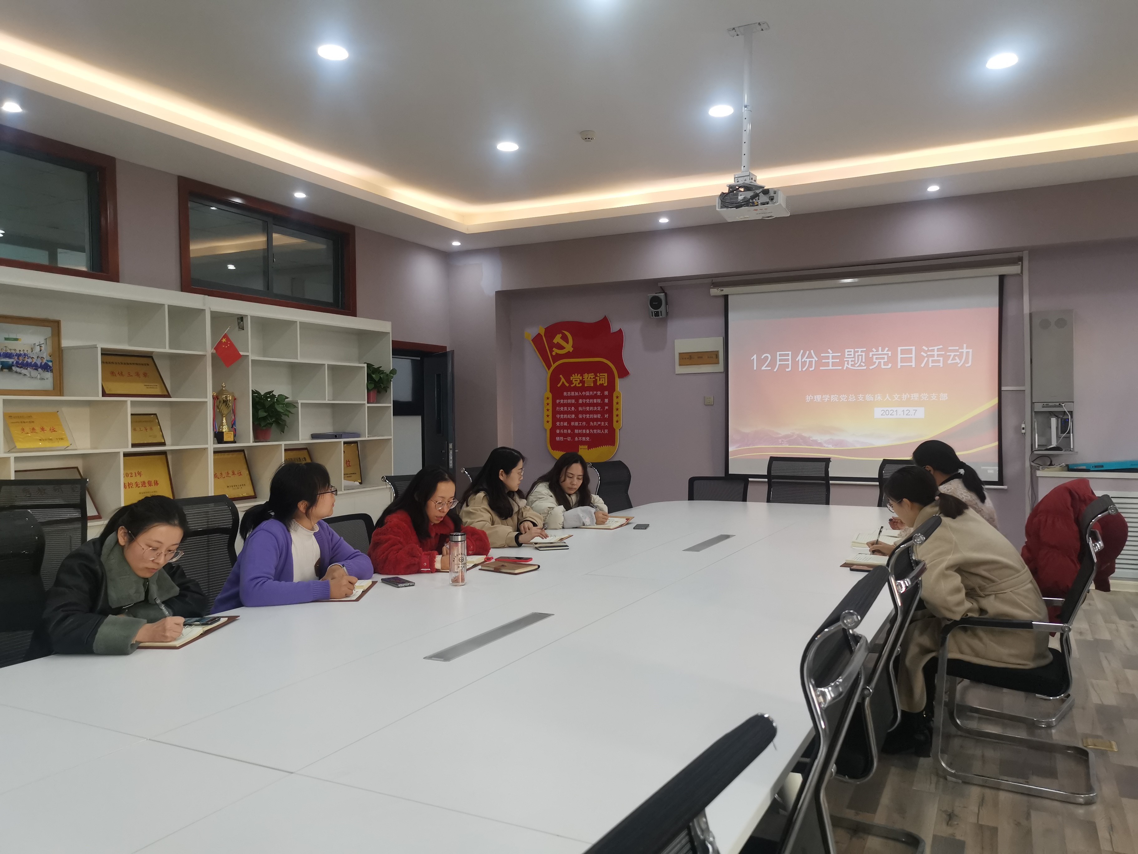 12月7日下午16点,护理学院党总支临床人文护理党支部在护理学院四楼会议室召开了党支部12月份主题党日活动,活动主题“坚定理想信念 补足精神之钙”。全体党员参加,会议由党支部书记王静同志主持。