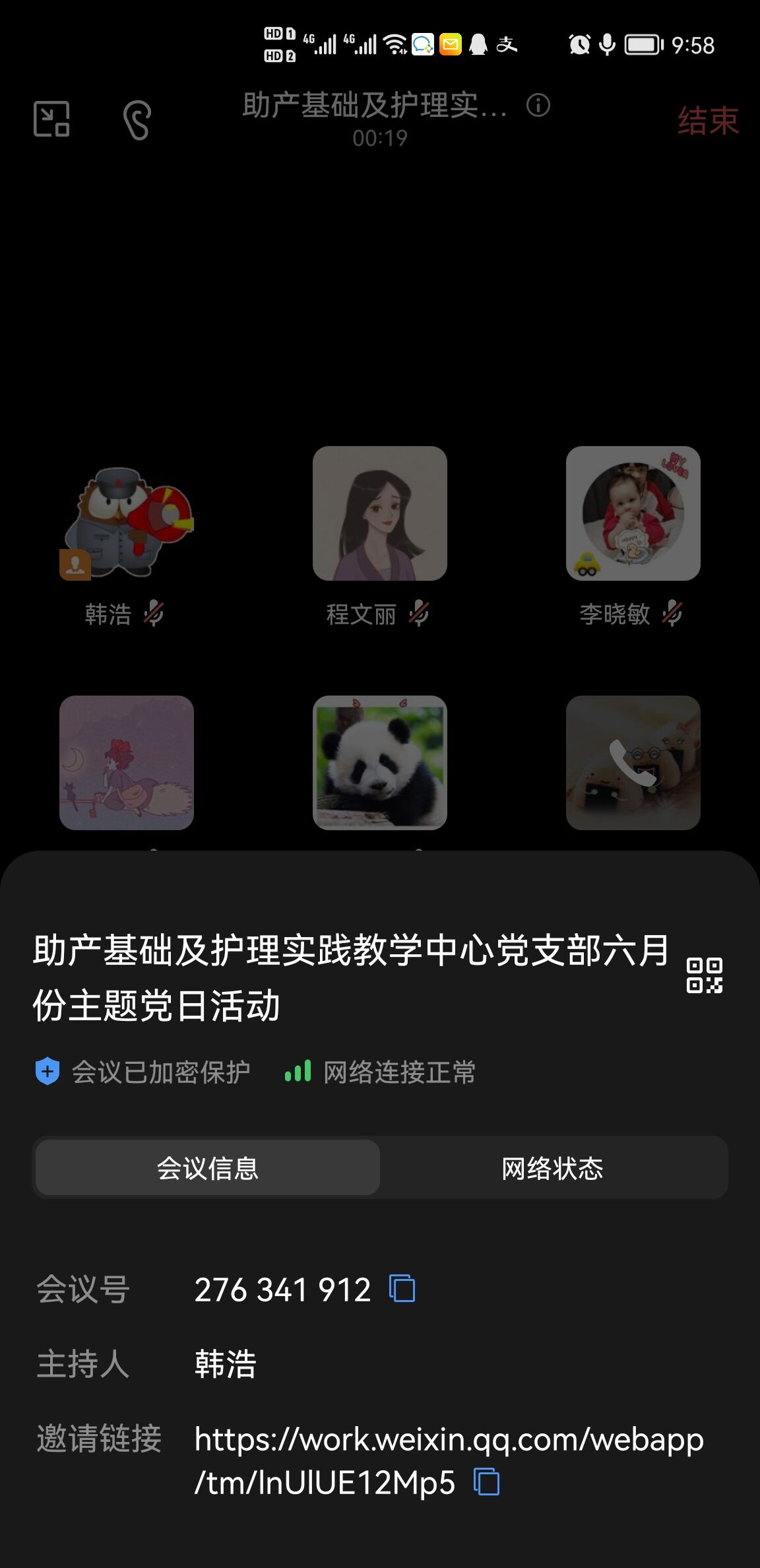 6月17日上午,助产基础及护理实践教学中心党支部在腾讯会议线上开展六月份主题党日活动,由支部副书记韩浩主持。