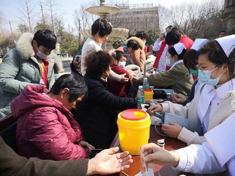 上午九点,志愿者服务队到达龙源街道并开展义诊活动,护理学院高莹莹和张红霞两位老师带领志愿者们开展了量血压,测血糖等一系列健康检测活动。随后志愿者们开展一系列的健康知识科普,促进社区居民对于常见病慢性病常识的了解,现场气氛融洽活跃。