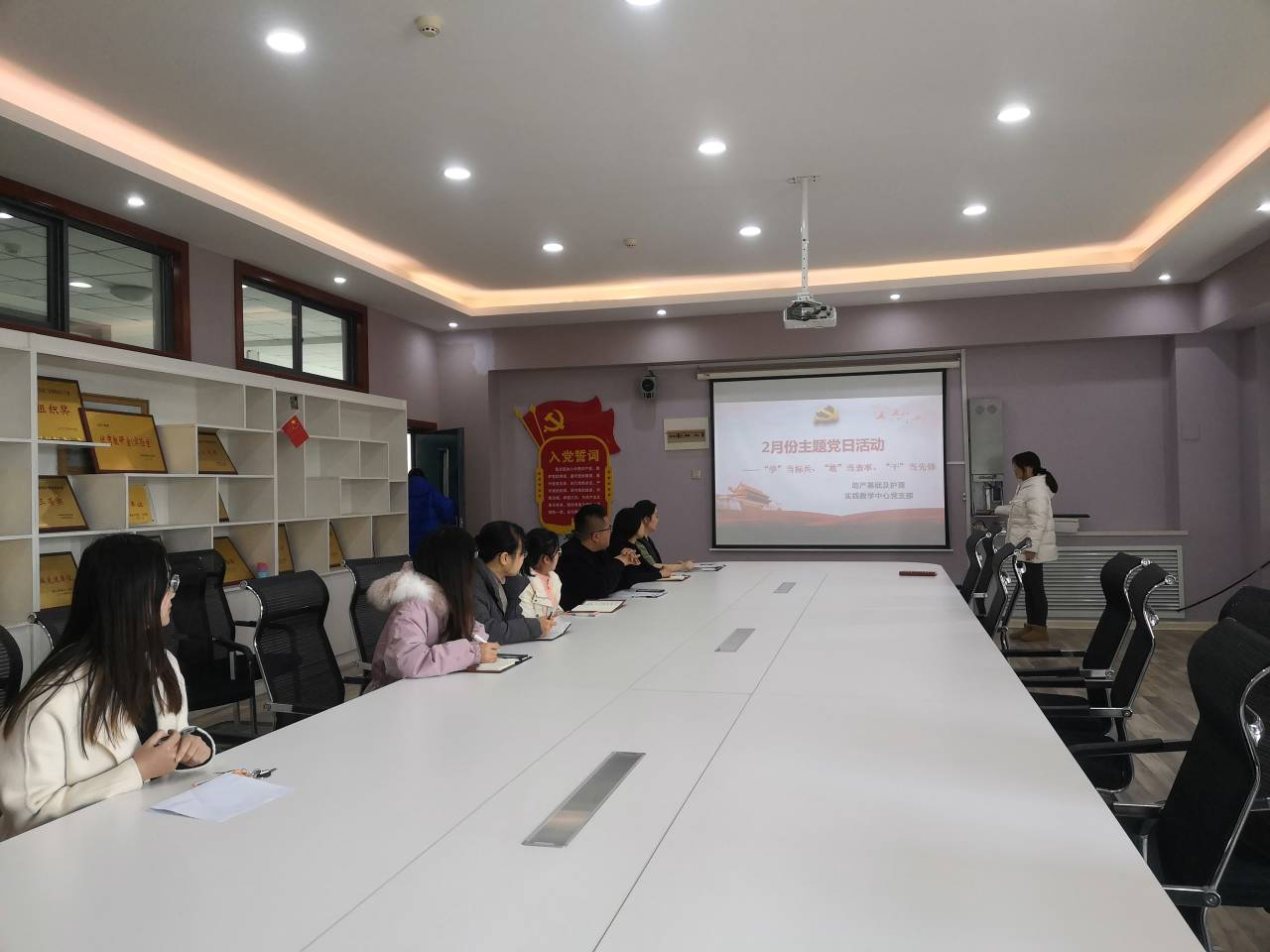2月17日上午,助产基础与护理实践教学中心党支部在院系楼四楼会议室开展“ ’学‘当标兵、’敢‘当标兵、’干‘当先锋”主题党日活动,支部副书记李晓敏主持。