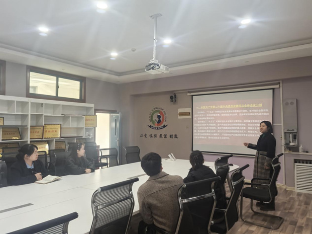 首先,李丹同志以“深入学习贯彻党的二十届四中全会精神”为主题,带领中心组成员系统学习《中国共产党第二十届中央委员会第四次全体会议公报》及《中共中央关于制定国民经济和社会发展第十五个五年规划的建议》等重要文件精神。领学过程中,李丹围绕全会提出的卫生健康事业发展部署、“十四五” 规划对人才培养的要求,结合护理学科特色进行解读,引导大家准确把握政策导向与行业发展趋势。