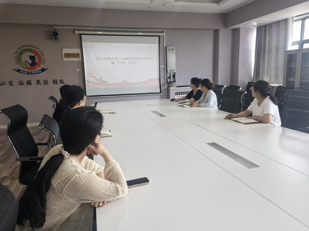 4月24日,临床人文护理党支部在党员活动室开展“全面落实中央八项规定精神,进一步推进作风建设走深走实”主题党日活动,支部副书记李丹主持,全体党员及入党积极分子参加。首先,李丹以《学思想、强党性...